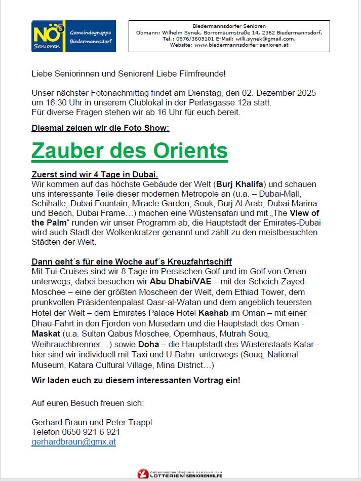 Weiters werden Foto-Shows und Filme vorgeführt.