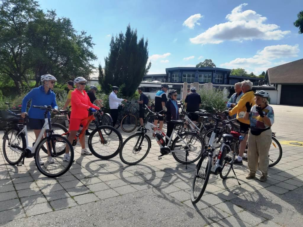15 Teilnehmer treffen sich bei der Jubiläumshalle zur Abfahrt