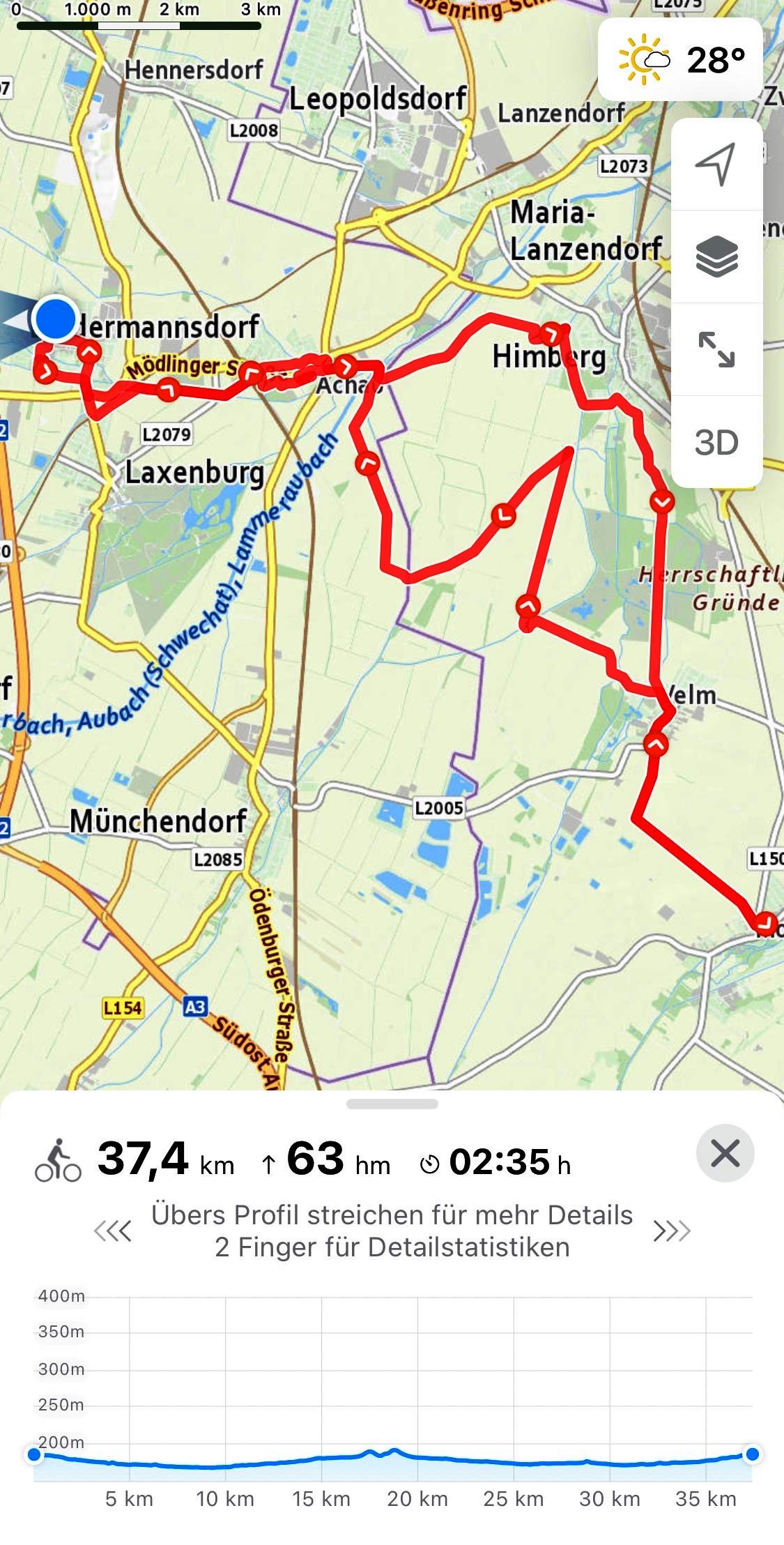 Dieses mal über Achau, Münchendorf, Günselsdorf (Radweg 9a) nach Kottingbrunn.