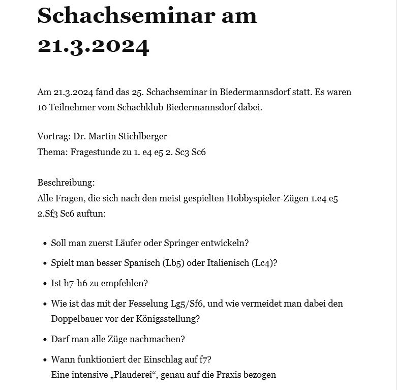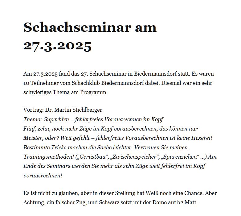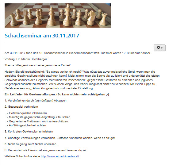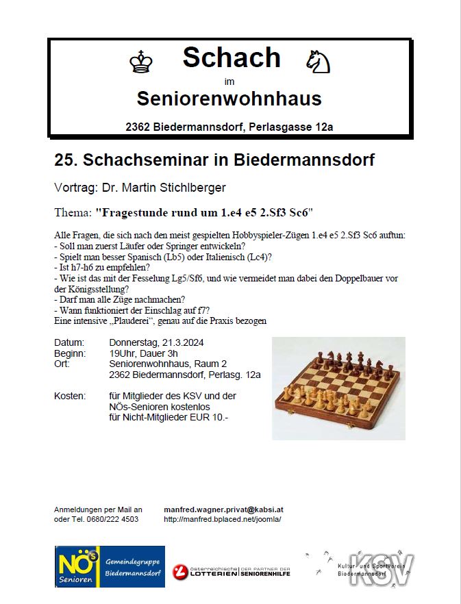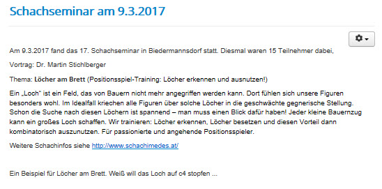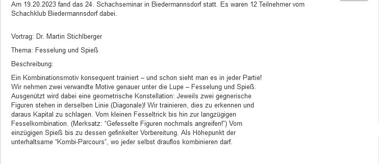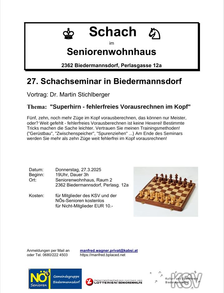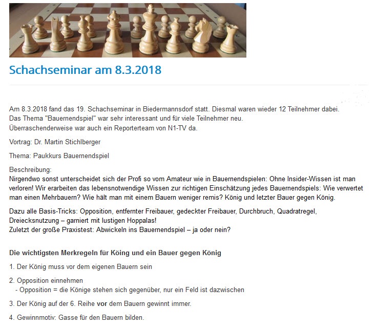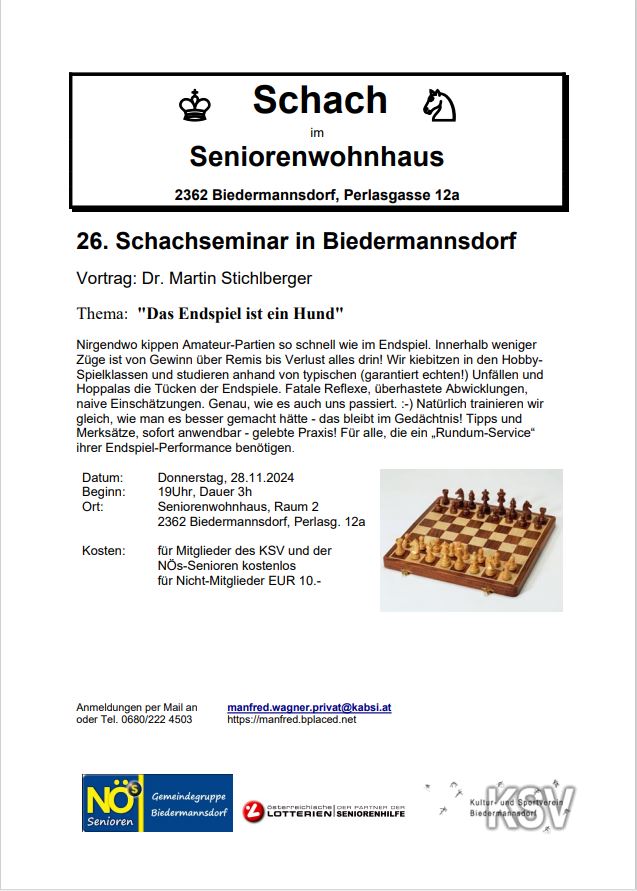 Infos zu weiteren Seminaren finden Sie auf der Homepage von Dr. Martin Stichlberger http://www.schachimedes.at/