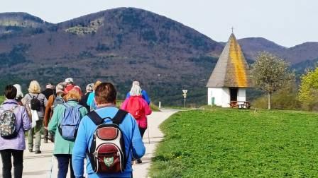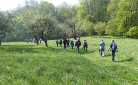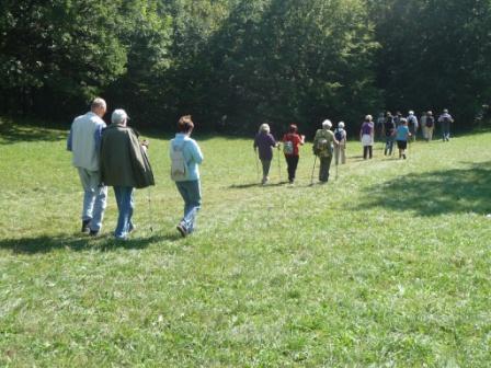 19 Senioren wanderten auf einem Wiesenweg Eichtung Rehazentrum nach Groisbach-Untermeierhof-Buchberg