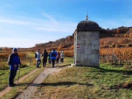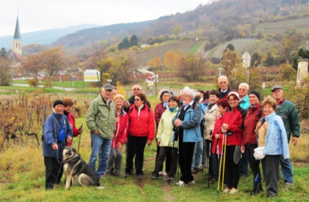 18 Wanderer gingen durch die Weingärten (schöne Färbung der Blätter) zum Tieftal.