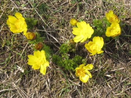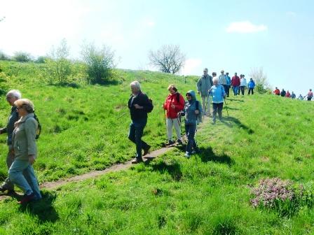 21 Wanderer genossen die blühenden Adonisröschen, Kuhschellen und Traubenhyazinthen.