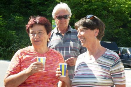 Beim Bus angekommen haben wir Rosa zu ihrem Geburtstag ein Ständchen gebracht und auf ihr Wohl angestoßen.