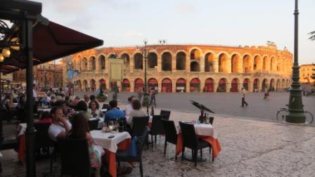 Die Piazza Bra - ist Veronas "salotto" der Salon, ein Treffpunkt mit zahlreichen Restaurants, Cafes und Bars.