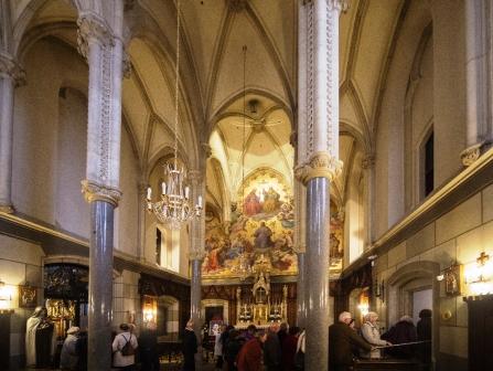 Das Innere der Wallfahrtsbasilika Sieben Schmerzen Mariae am Pöstlingberg mit der berühmten Krippe