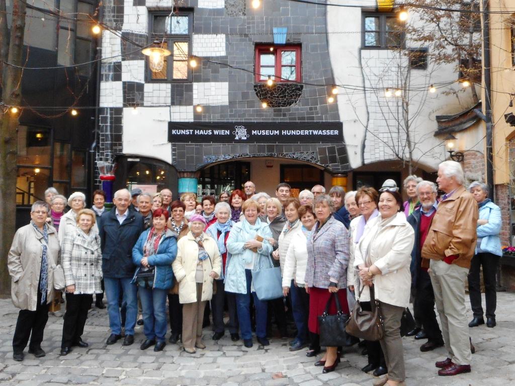 47 Senioren fuhren bei dieser Veranstaltung zuerst mit dem Bus zur Kettenbrückengasse mit den Häusern an der Wienzeile