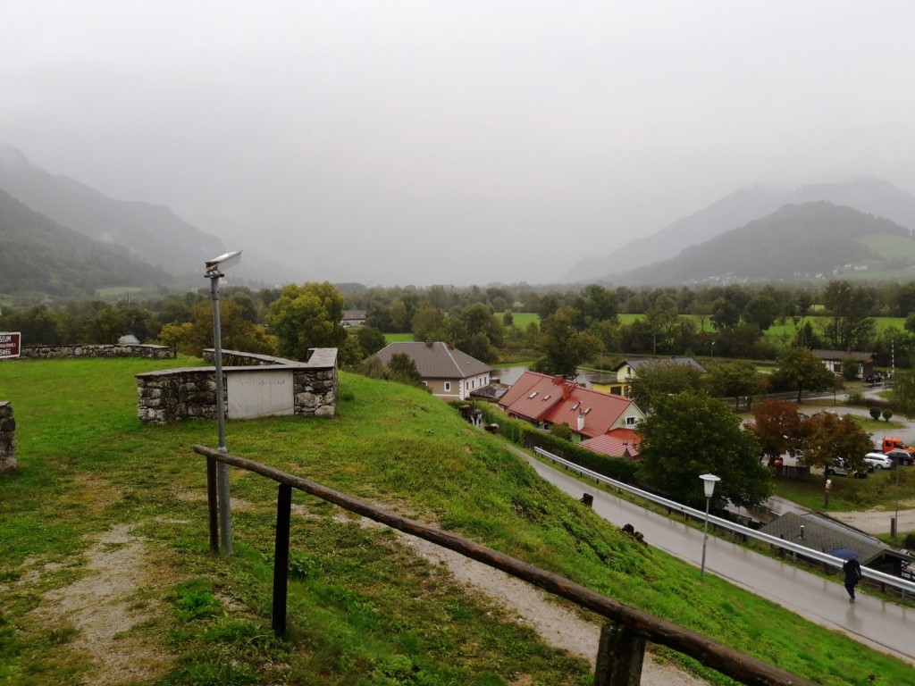 wo sich ein schöner (leider vom Wetter getrübter Ausblick) über die Stadt bot