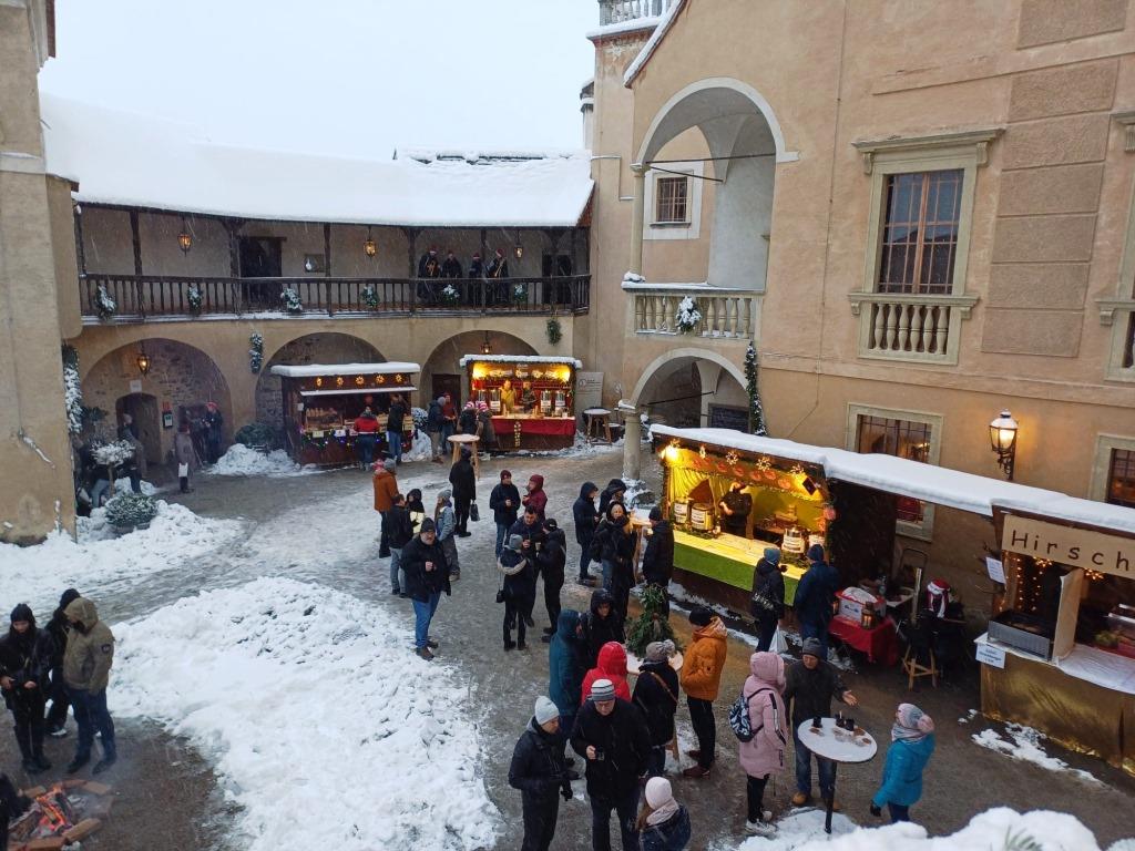 Bei Wintereinbruch mit starkem Schneetreiben besuchten 56 Senioren den Adventmarkt auf der Rosenburg