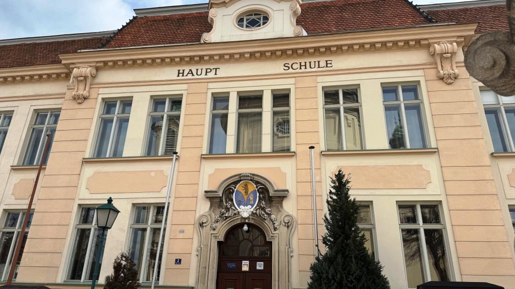 Nach dem Mittagessen fuhr der Bus nach Berndorf zur einzigen Stilklassenschule, die jetzt natürlich eine neue Mittelschule ist