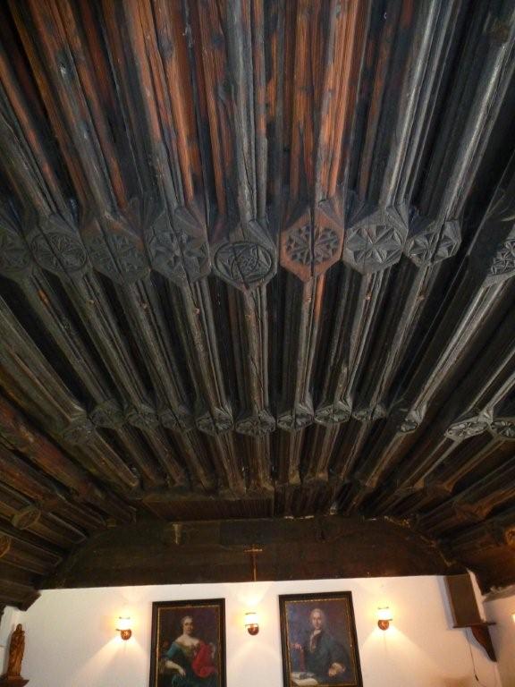 Die spätgotische Balkendecke in Form eines korbbogigen Tonnengewölbes - oben:Peter u. Paul (romanisch) um 1200 entstanden