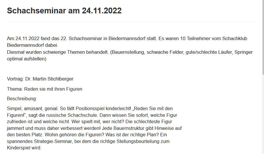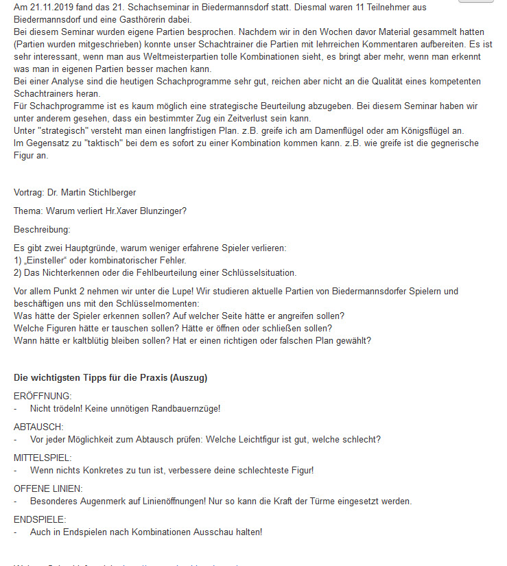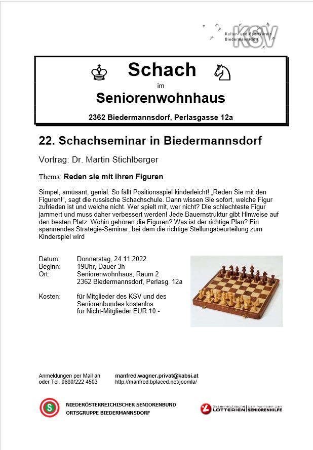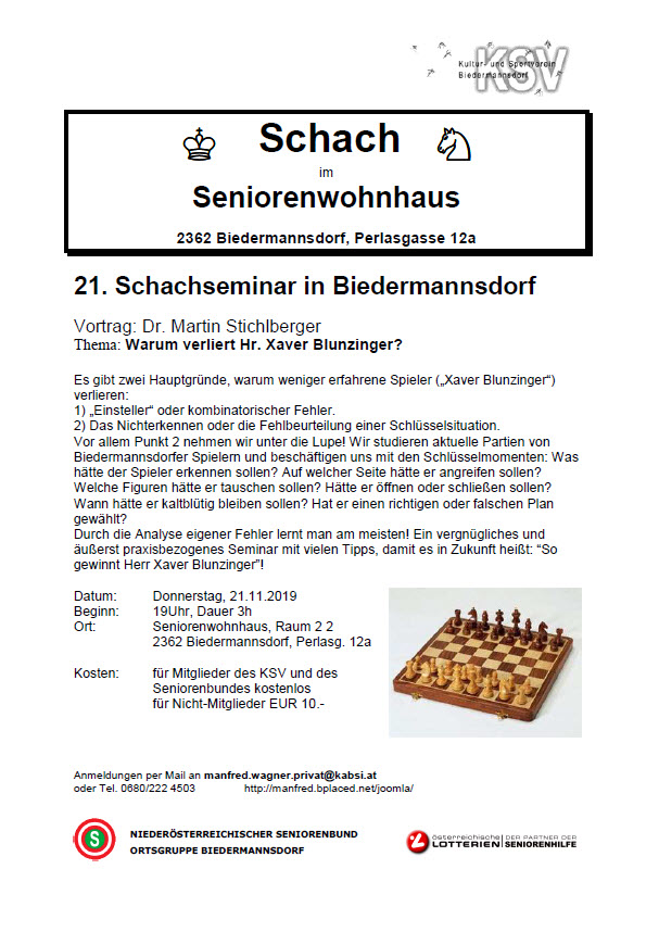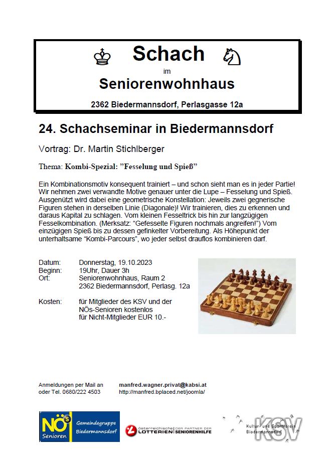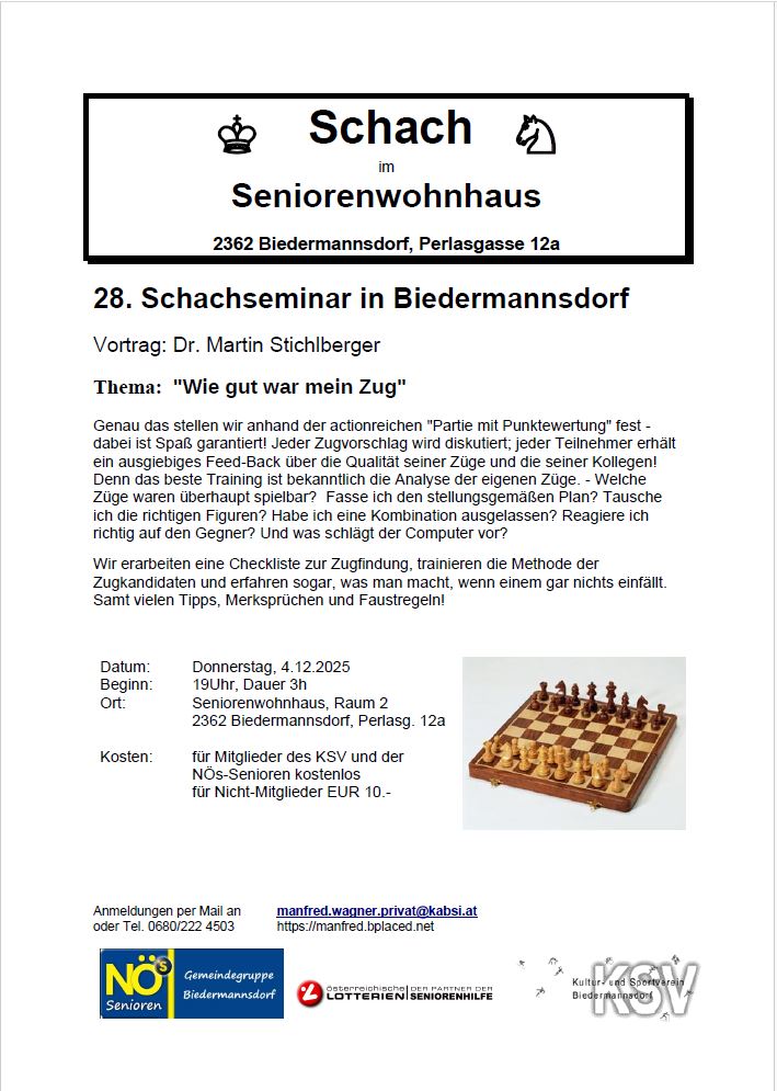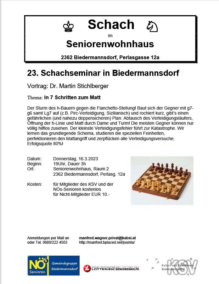 Infos zu weiteren Seminaren finden Sie auf der Homepage von Dr. Martin Stichlberger http://www.schachimedes.at/