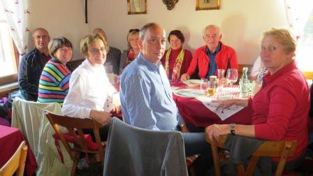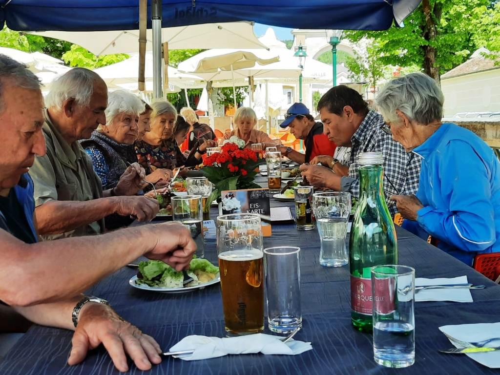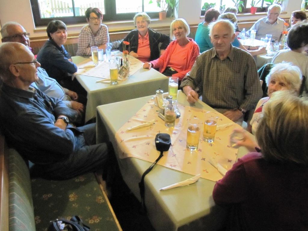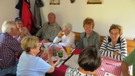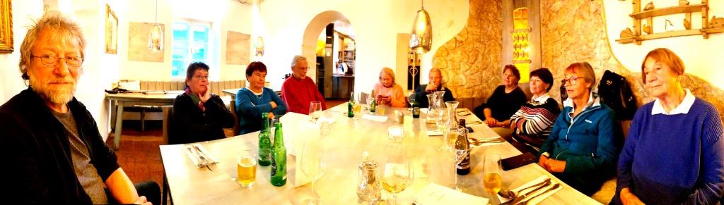 24 Wanderer lassen sich das Mittagessen im Klostergasthof Thallern gut schmecken