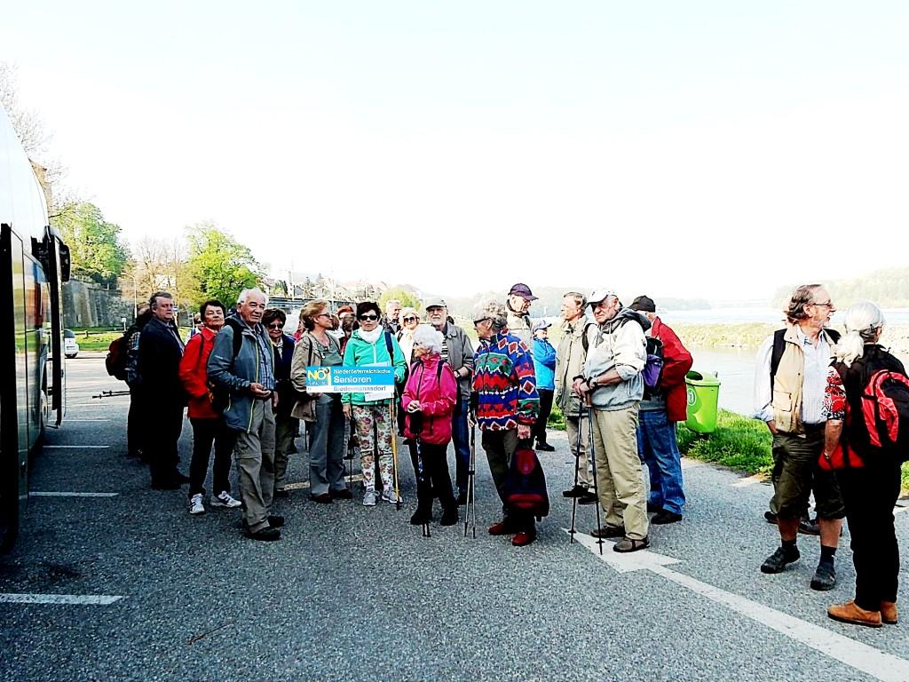 28 Senioren starten diese Wanderung von der Arbachmühle über die Mannersdorfer Wüste zur Ruine Scharfeneck