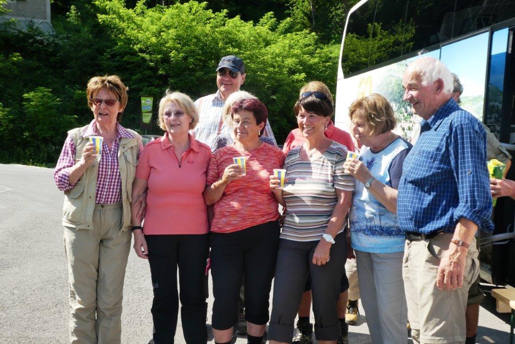 Beim Bus angekommen haben wir Rosa zu ihrem Geburtstag ein Ständchen gebracht und auf ihr Wohl angestoßen.