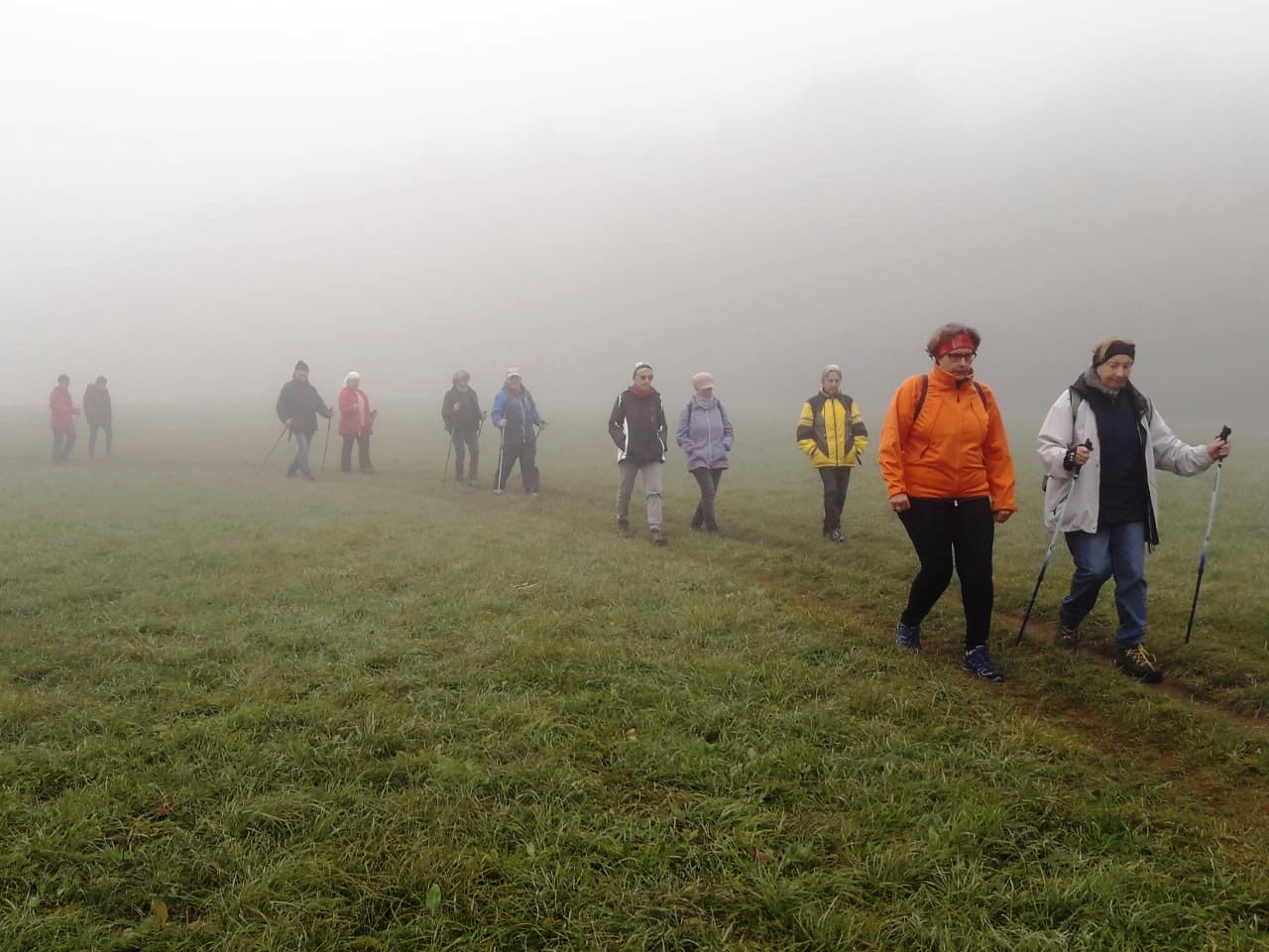 In teilweise dichtem Nebel wanderten 19 Senioren am Gießhübl