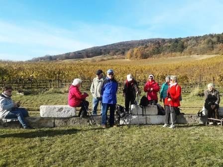 18 Wanderer gingen durch die Weingärten (schöne Färbung der Blätter) zum Tieftal.