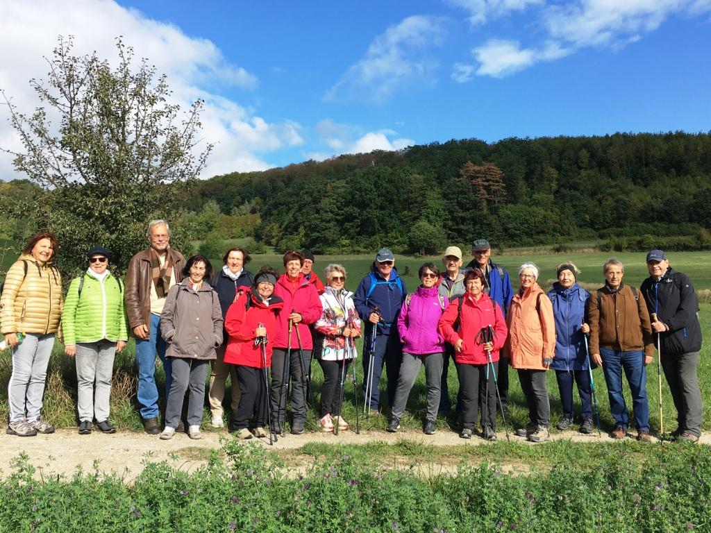 Bei herrlichem Wetter starten 17 Teilnehmer zu einer schönen Wanderung ...