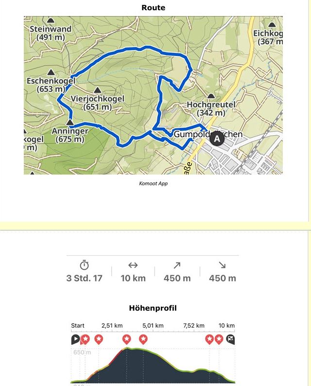 Höhenmeter ca. 170m, Gehzeit ca. 3,5 Std.